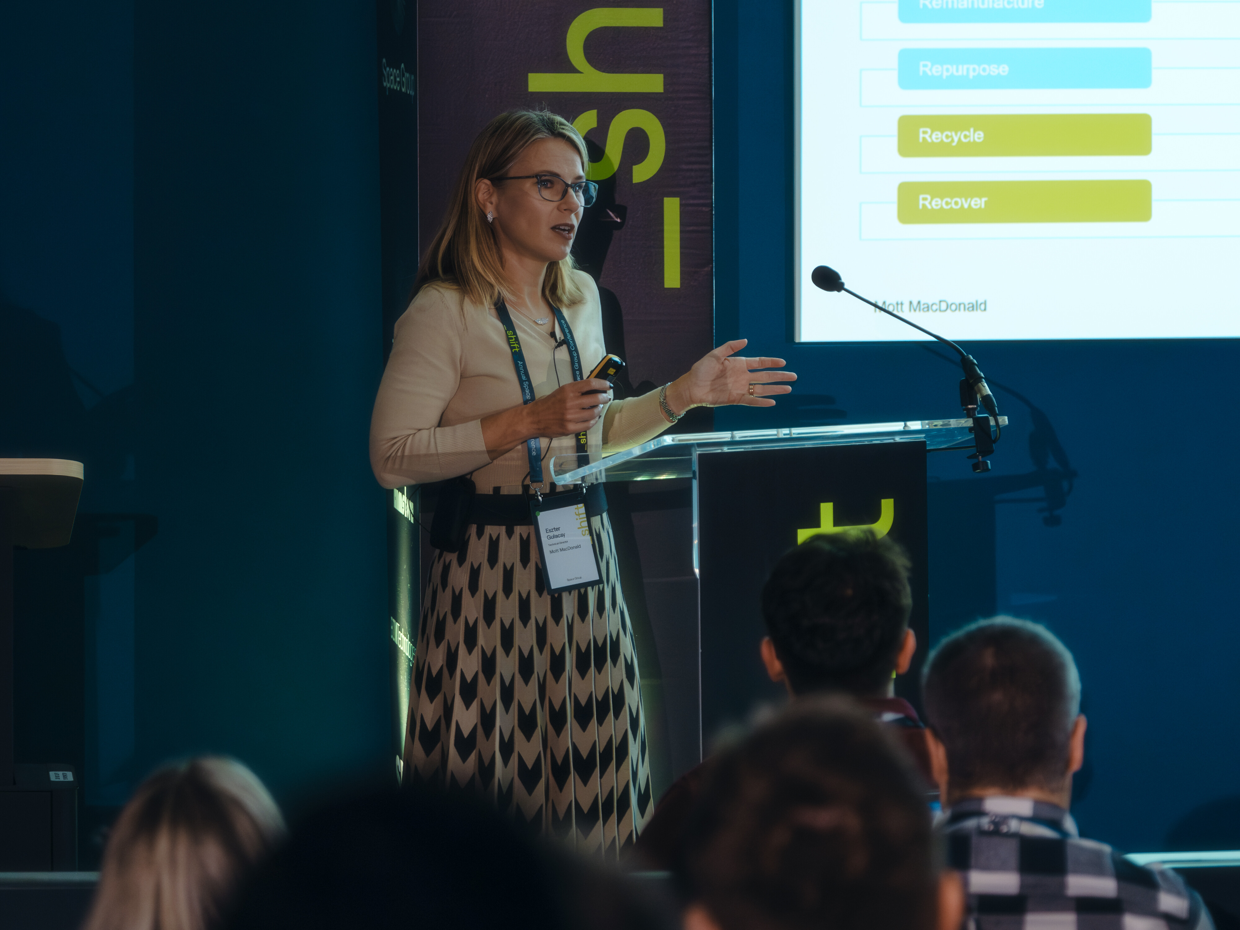 Eszter brought industry-focused expertise and technical excellence to the floor. Speaking directly to an audience that included construction industry professionals, Eszter spoke of the necessity of systems-level thinking in relation to circular economy adoption. She spoke of learning from other industries and the need for greater transparency across the board so that we can each learn from one another, emphasising the need for collaboration.